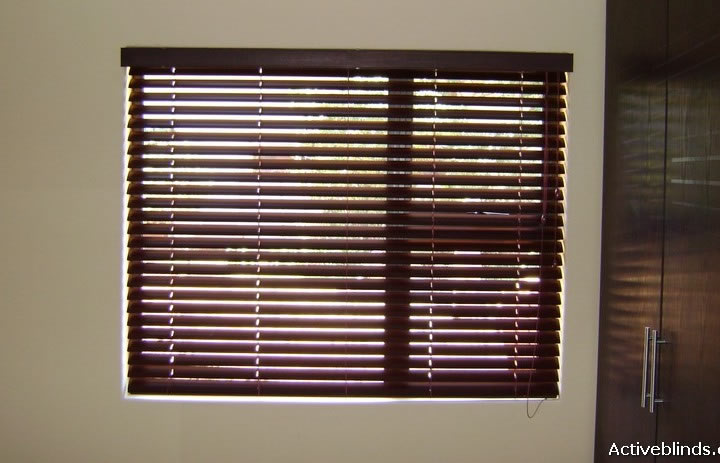 50mm Mahogany Dark Aluwood Blinds Matches Cupboard Doors