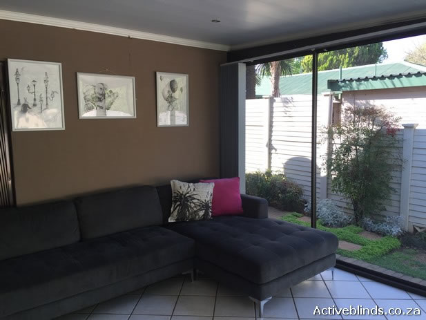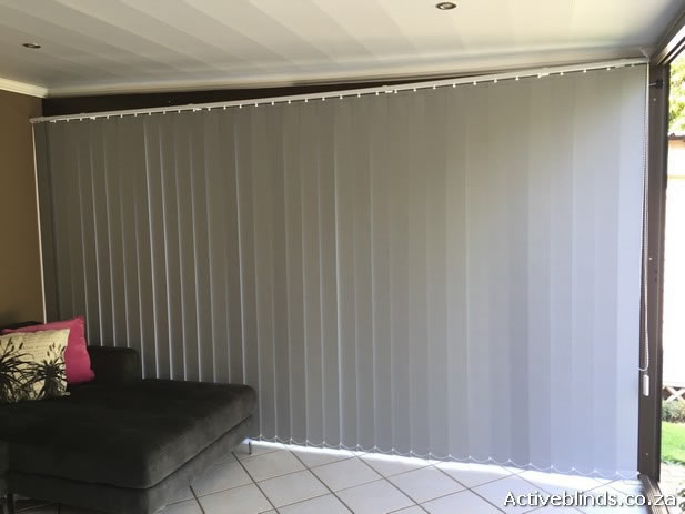This blockout blind is perfect as it provides the perfect light control for this room. It can be slid to cover the whole window and then turned closed to block all sunlight or open to let through as much sunlight as you wish. When the blind slides totally open, the slats stack up neatly and out of the way. The blockout material that was used in this vertical blind is UV resistant and blocks out the sun totally when closed.