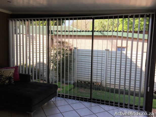The vertical blind covers the whole sliding door and is turned open to let sunlight in the room.